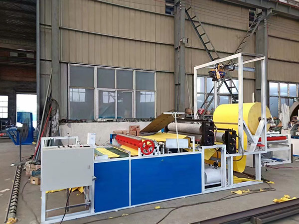 將卷筒紙經(jīng)過染色輥印刷圖案,然后專業(yè)制作的凹型花紋鋼棍和附有彈性及耐溫的羊毛相對壓,使原來的平紋紙對壓成各類花型及紋路的泡紙(壓花可根據(jù)用戶需要制作各種不同清晰美觀的花紋圖案),已便增加紙的厚度(泡度),且對壓后的泡紙高度可通過兩棍對壓的壓力自行調(diào)節(jié),自動電子計數(shù)、張數(shù)報警、自動裁切。